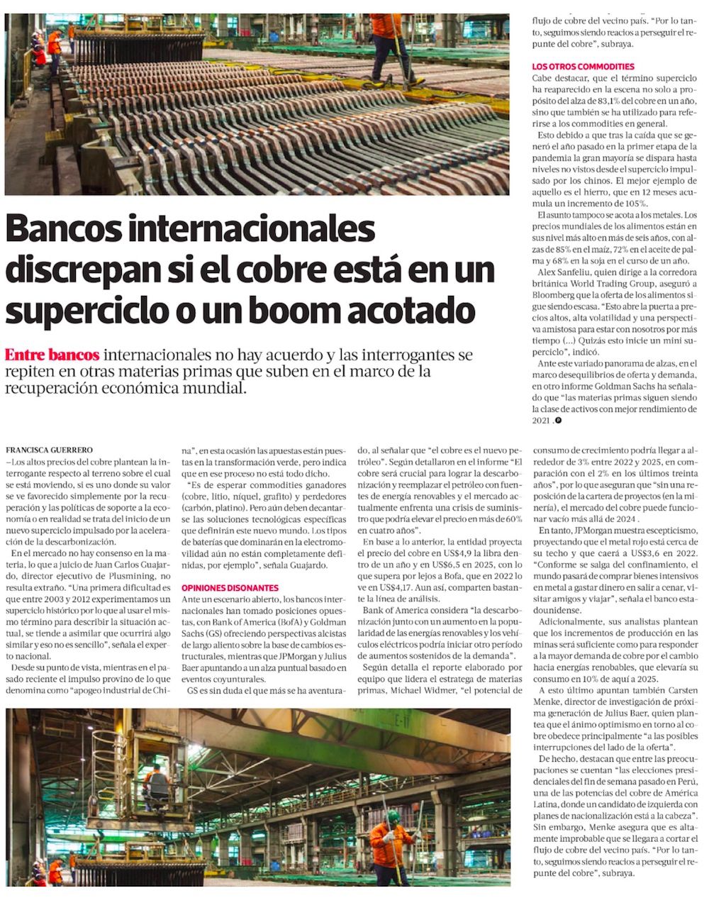 The high prices of copper raise the question regarding the terrain on which it is moving, if it is one where its value is favored simply by the recovery and the policies to support the economy or in reality it is the beginning of a new supercycle driven by accelerating decarbonization.